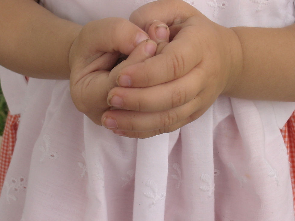 Your bright blue Converse shoes clap onto the pavement in the parking lot, contrasting sharply against the sun-baked blacktop. They had been tied for you in a rush by a nice lady you met more than a month ago, who takes you by the hand and walks with you to the doors. You wish you could tie shoes as fast and as good as she does. Maybe once you turn five soon, you can find someone who can teach you how.